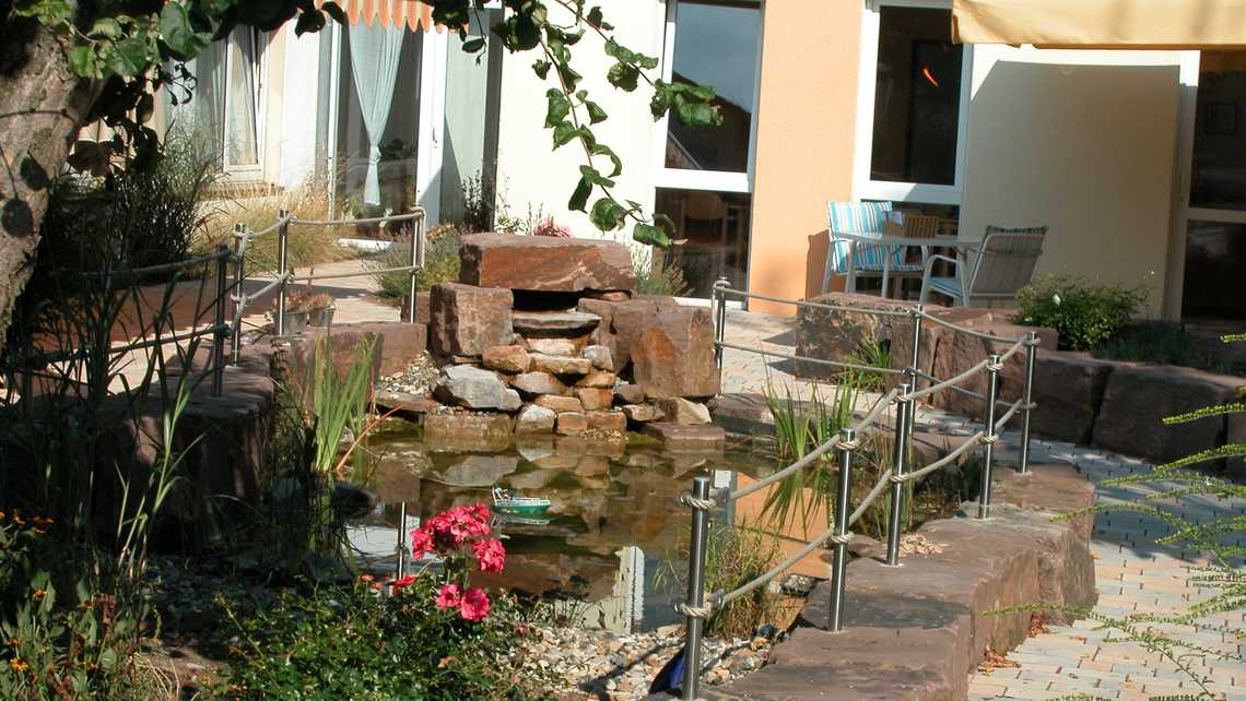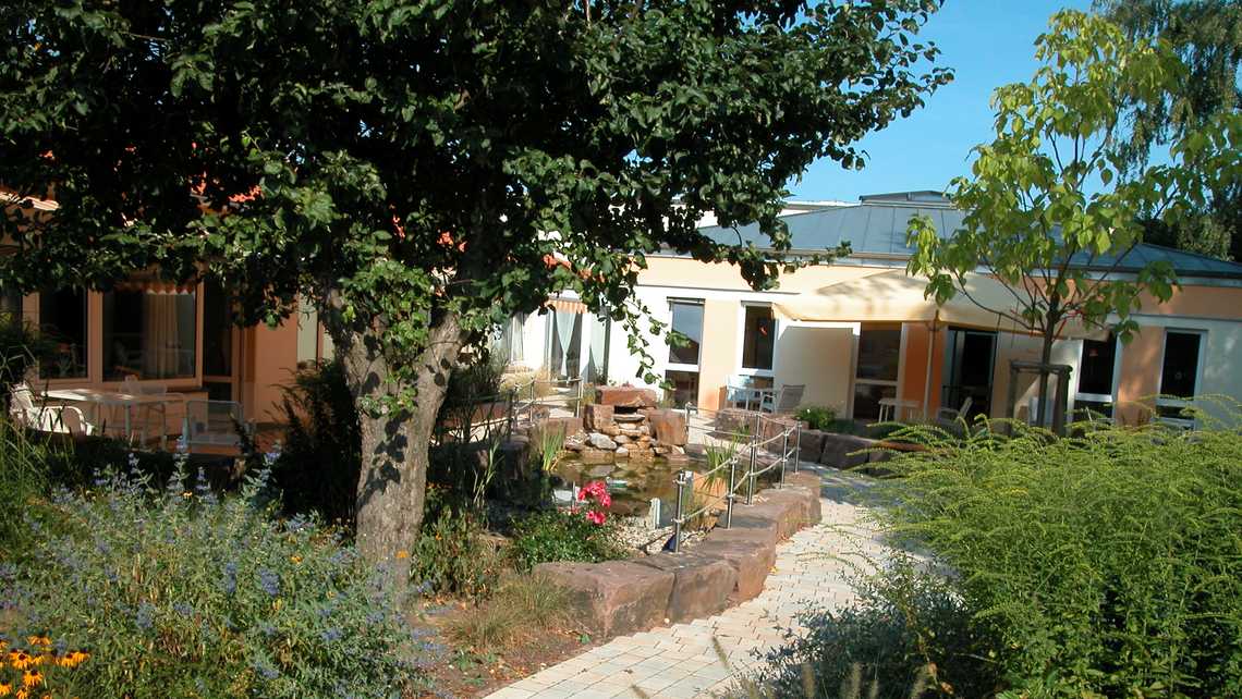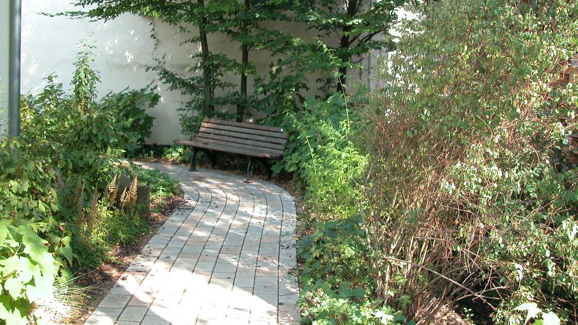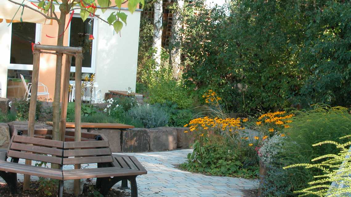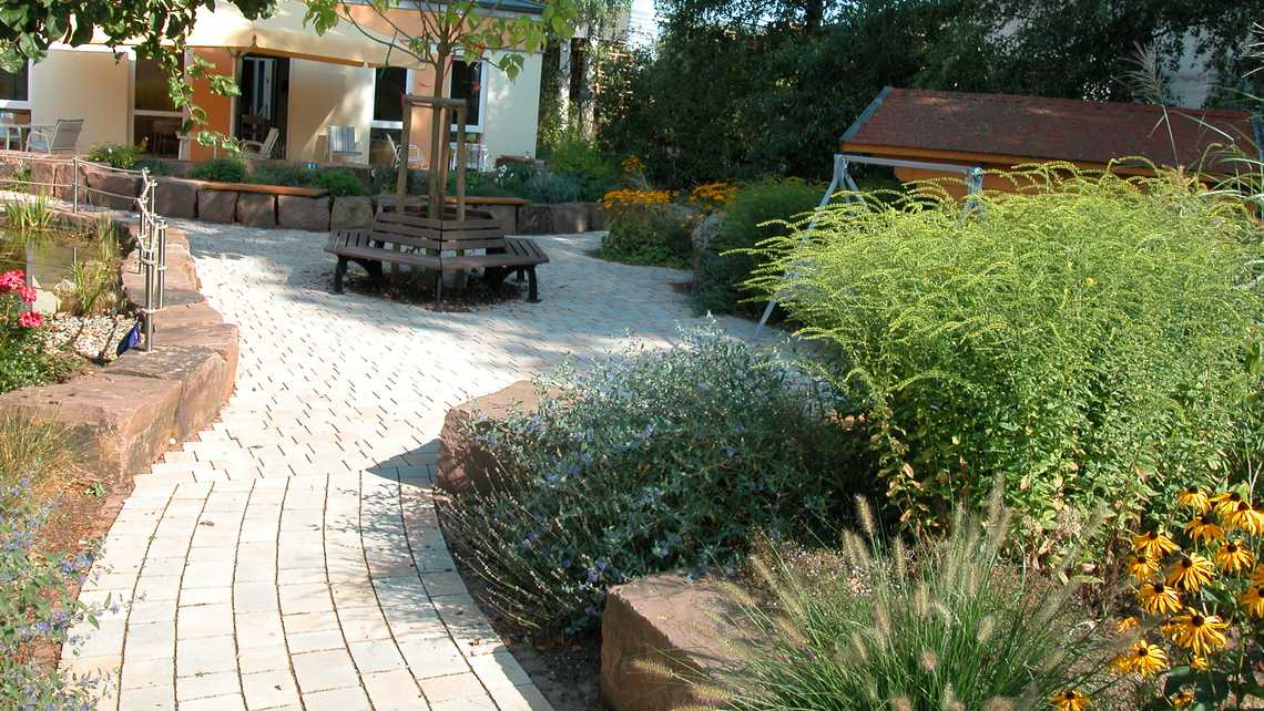 | Ausstattung | Sitzplätze für die fünf Gruppen, barrierefreie Gestaltung mit Naturstein-Sitzmauern, Zentraler Sitzplatz, Zierteich mit Quellbach, Hochbeete, abwechslungsreiche Bepflanzung mit Stauden der verschiedenen Lebensbereichen. |