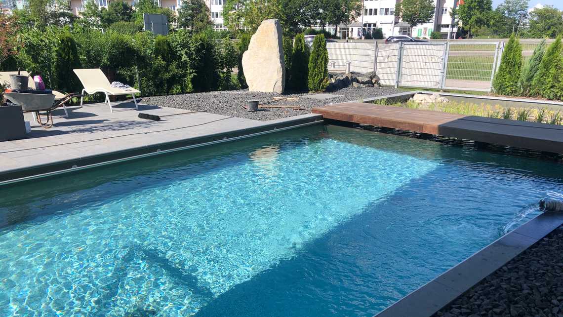 | Bauweise | Sanierung gem. FLL Richtlinie für volliologische Wasseraufbereitung, 2-Kammer-System |