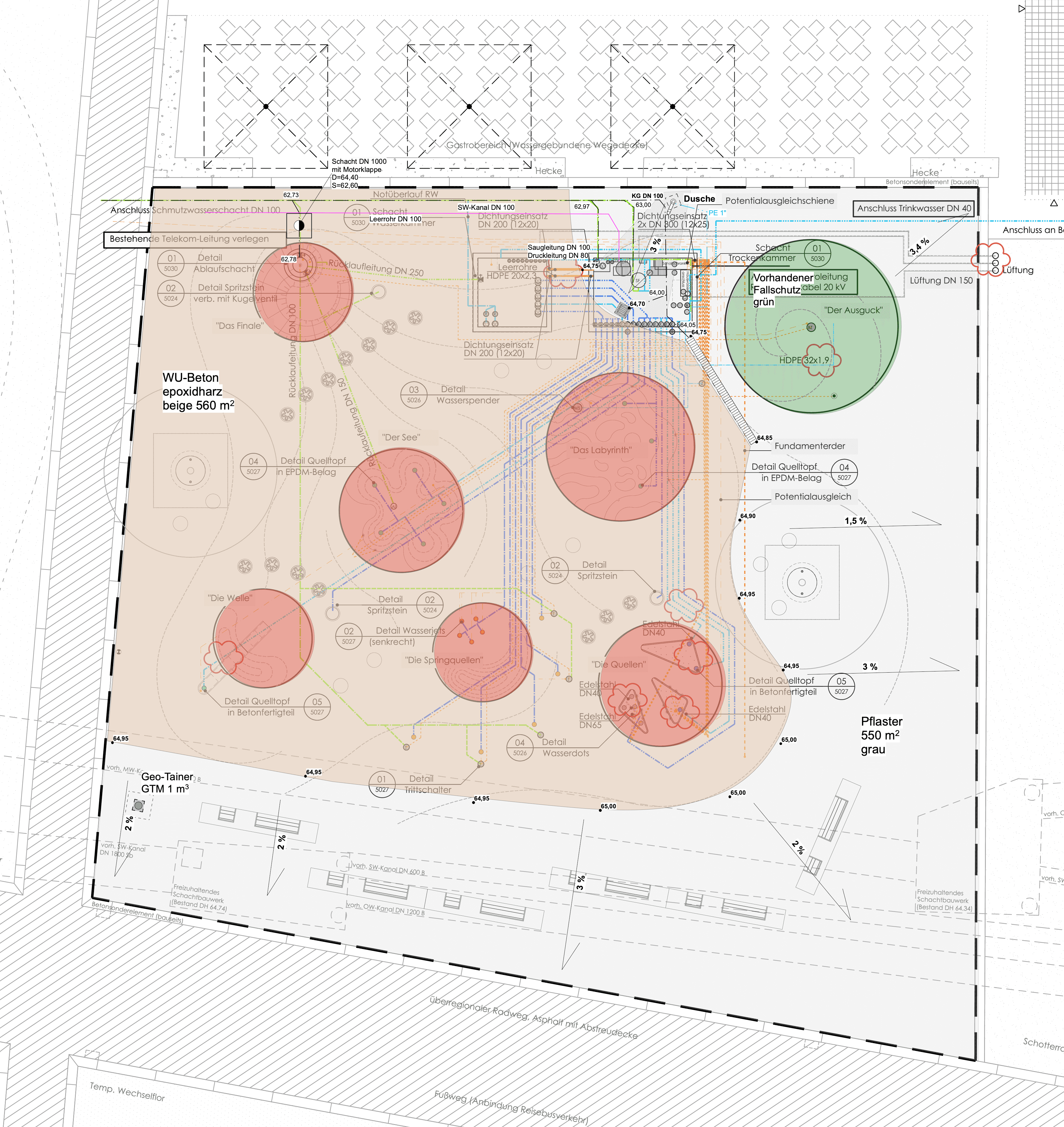 | Bauweise | Wasserspielplatz 600 m² |