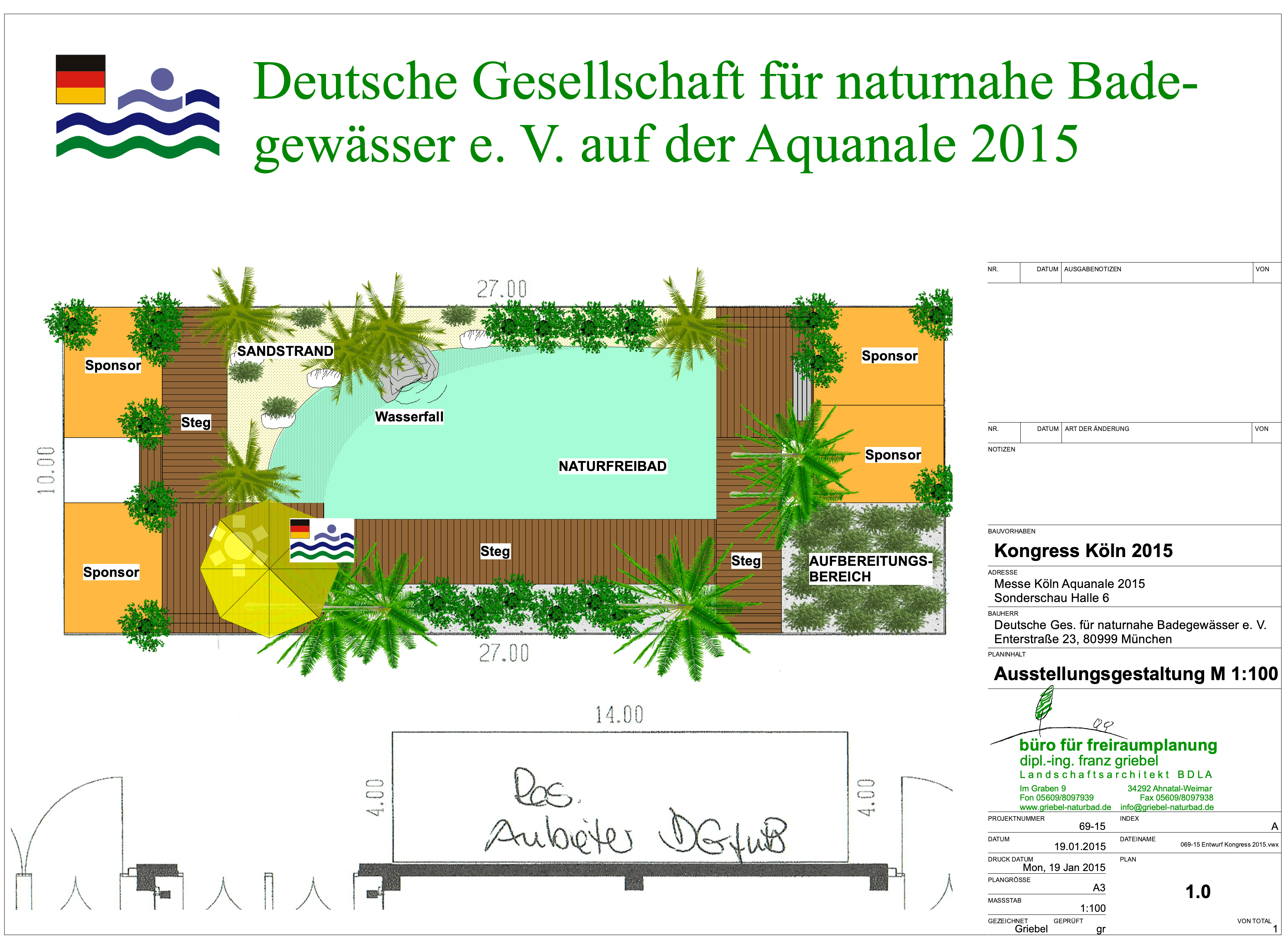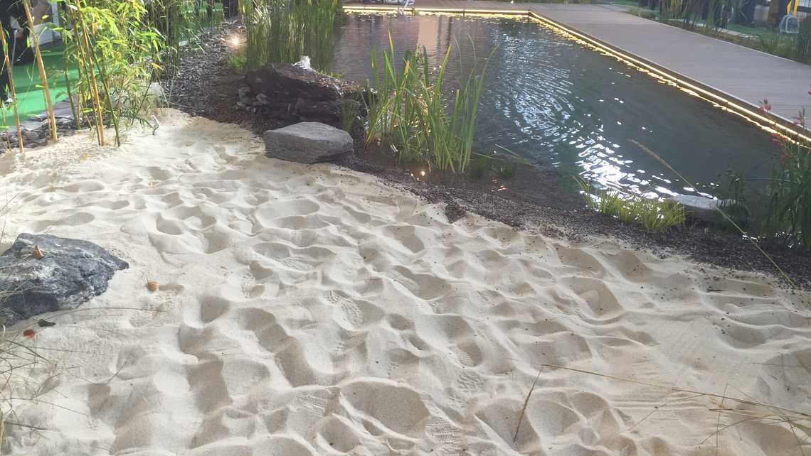 | Ausstattung | 80 m² Holzterrassen, 30 m² großer Sandstrand, Wasserspiele, Beleuchtung, Aufbereitungsbereiche mit Röhrichtbepflanzung |