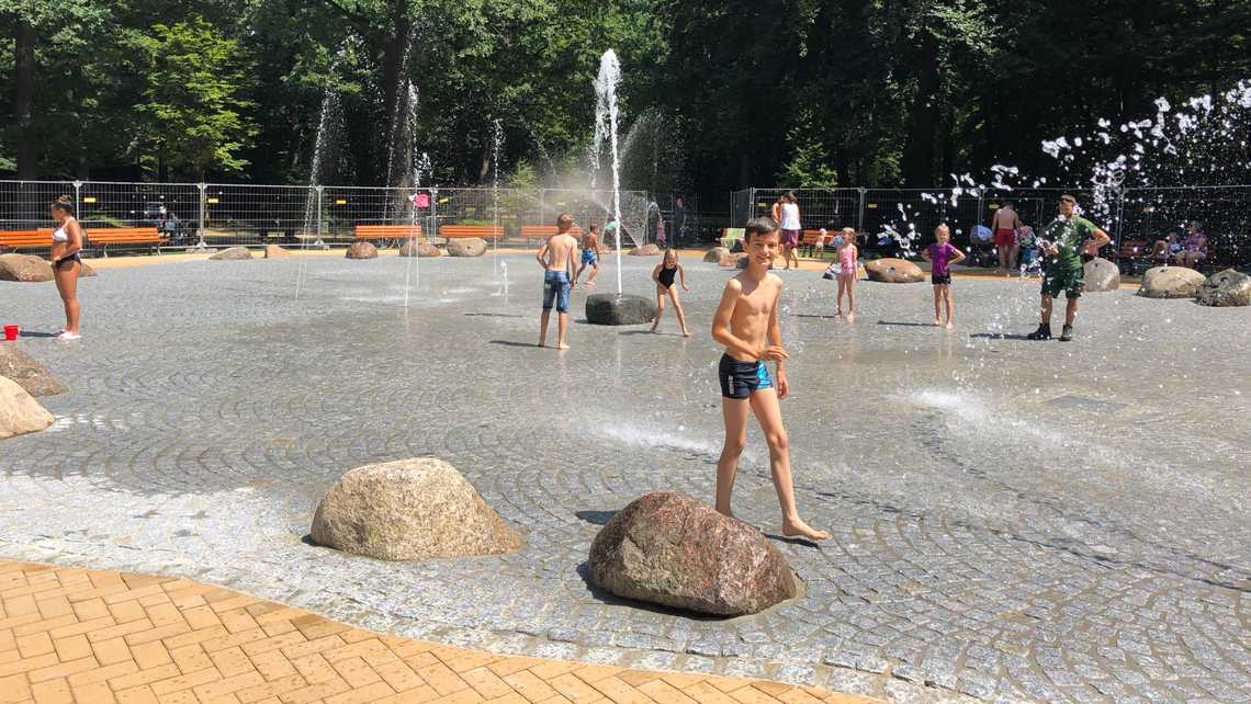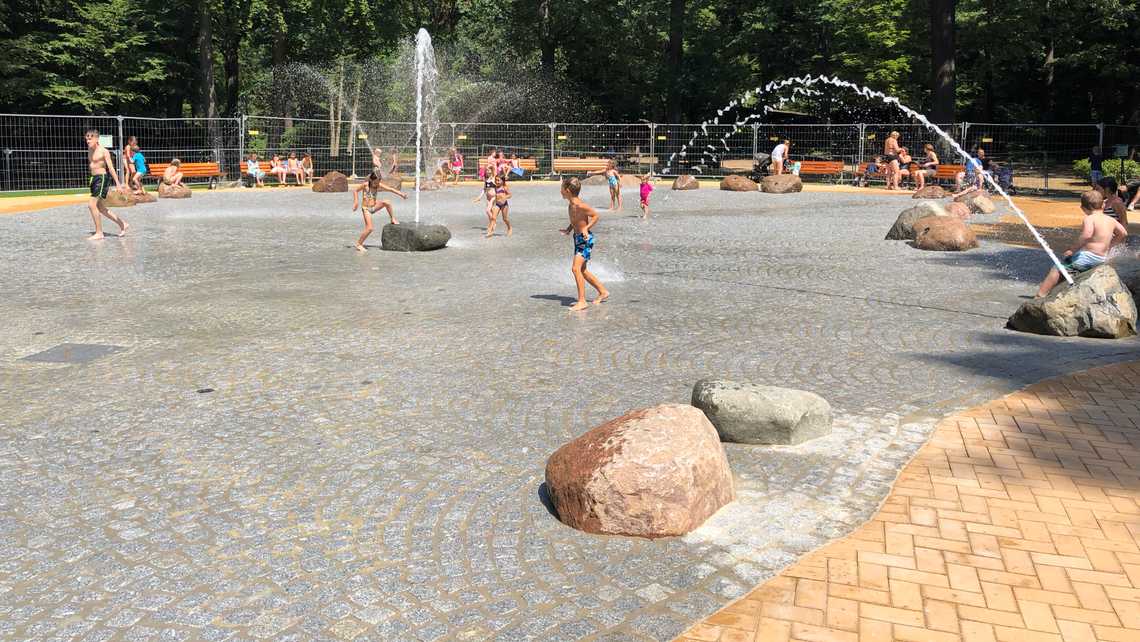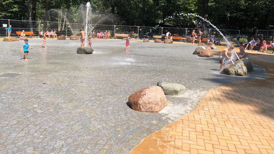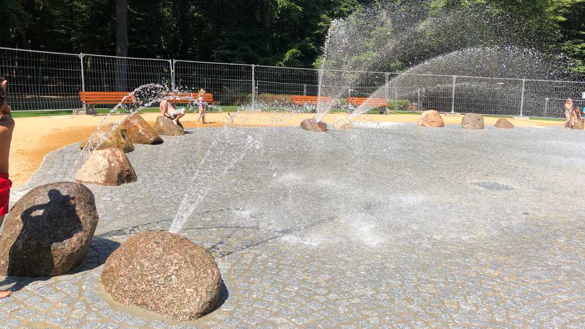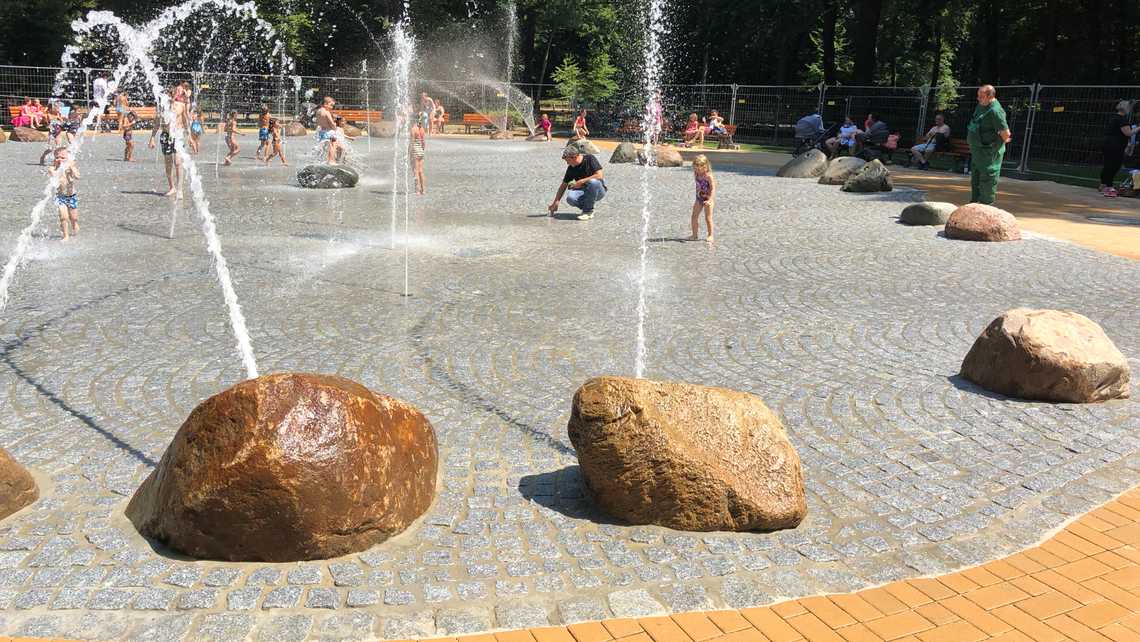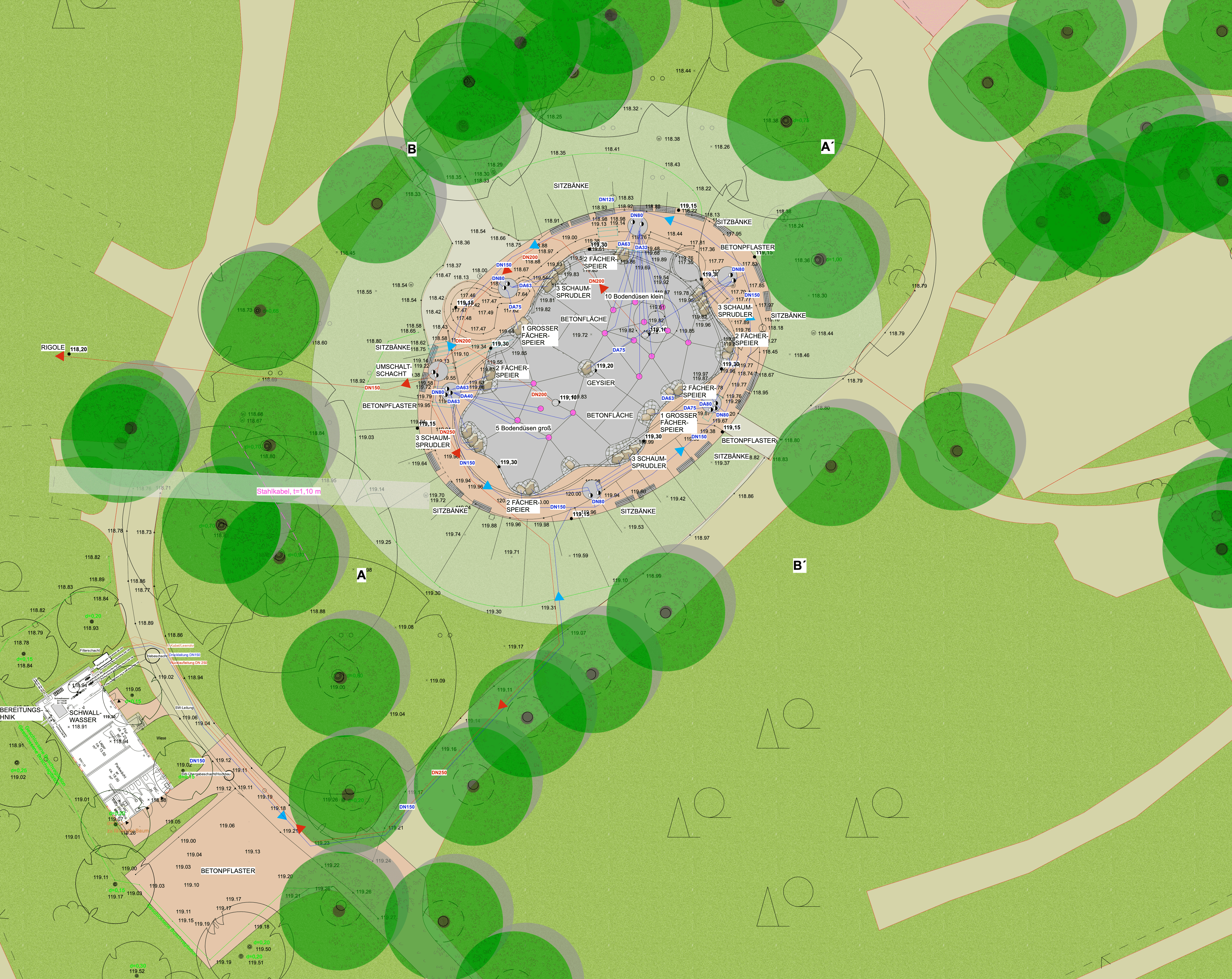 | Ausstattung | Sprühfeld mit Bodendüsen, Fächerdüsen, Geysir, Schaumsprudler, Gestaltung des Umfeldes mit Solitärbäumen, Granitfindlingen, Rollrasen |